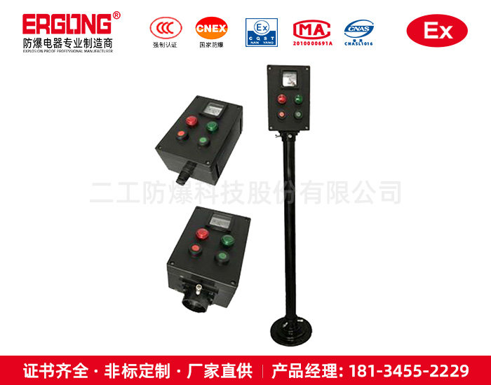 二工防爆,專業(yè)生產(chǎn)防爆電器、防爆燈具、防爆管件、防爆儀器儀表、不銹鋼防爆電器、防爆防腐電器、粉塵防爆電器和防水防塵防腐電器及燈具、防爆風(fēng)機、防爆空調(diào)、移動照明等產(chǎn)品、銷售及技術(shù)服務(wù)為一體的企業(yè)。